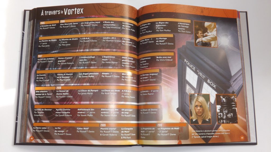 Un simple livre ne saurait décrire en détail l’histoire de Doctor Who à la télévision, sans parler des milliers de Romans, Bandes Dessinées, Nouvelles, Aventures Audio et même films. C’est pourquoi cet ouvrage, s’intéressent aux moments les plus essentiels du voyage palpitant du Docteur à travers l’éternité.