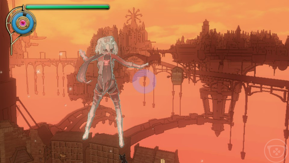 Comme tout jeu du genre, on pourra lui reprocher des détails comme les caméras trop mal calibré en particulier quand un boss ose vous envoyer dans un coin sombre (pauvre Kat). Mais quel jeu ne souffre pas d’ennuyeux détail de ce style ? L’action, l’aventure, les dialogues, tout est tellement plus important que les si maigres causes de frustration dans ce Gravity Rush. Par exemple, quand on achève un boss après avoir kické ses points faibles tout de rouge luisants, l’écran signale au moyen d’une patte de chat que Kat peut porter l’assaut final, symbolisé par une transformation japanime dans les règles de l’art. Un grand final que mérite le combat. C’est là, le génie de Gravity Rush. Il touche très profondément à ce qui nous fait plaisir.